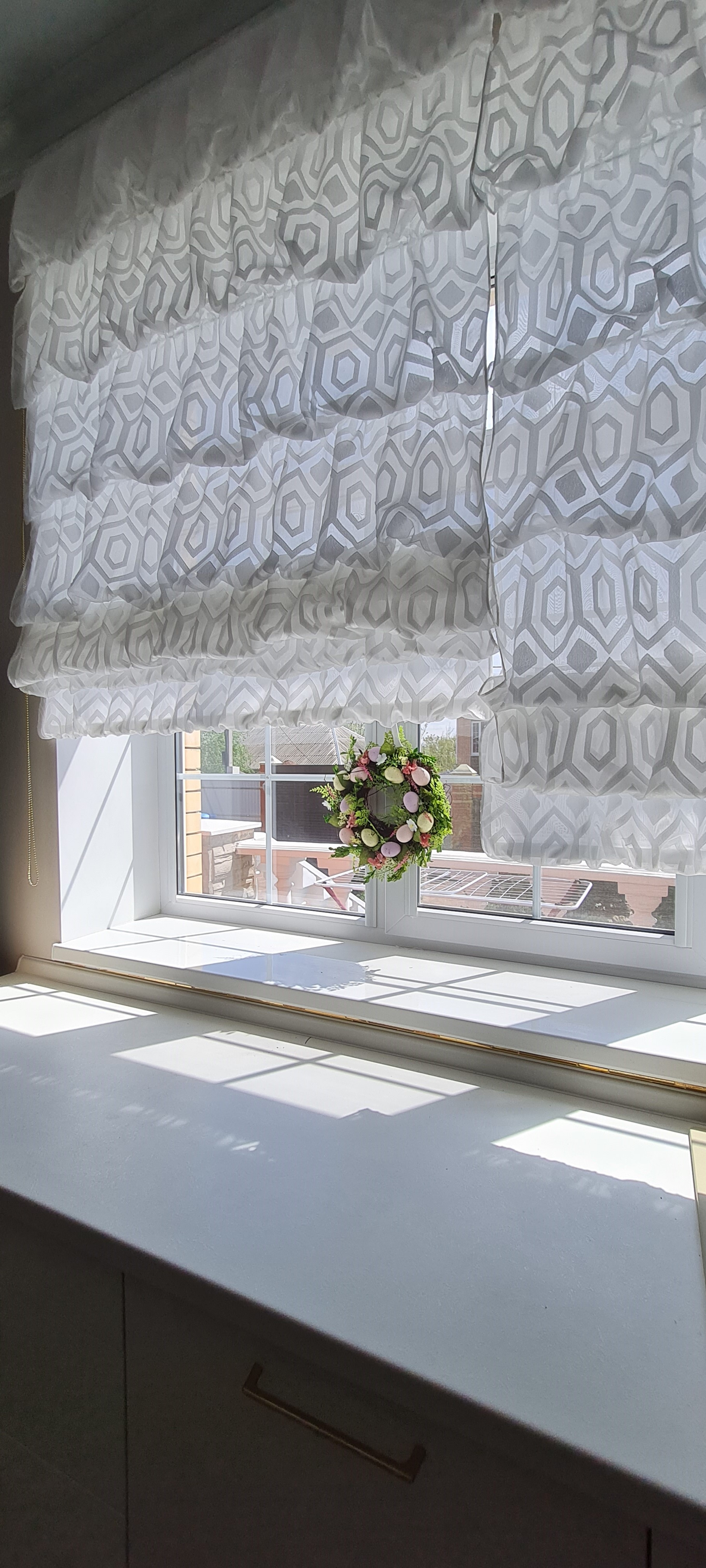 Создайте уютный и гармоничный интерьер благодаря римским шторам — практичному и элегантному решению для любого дома.
